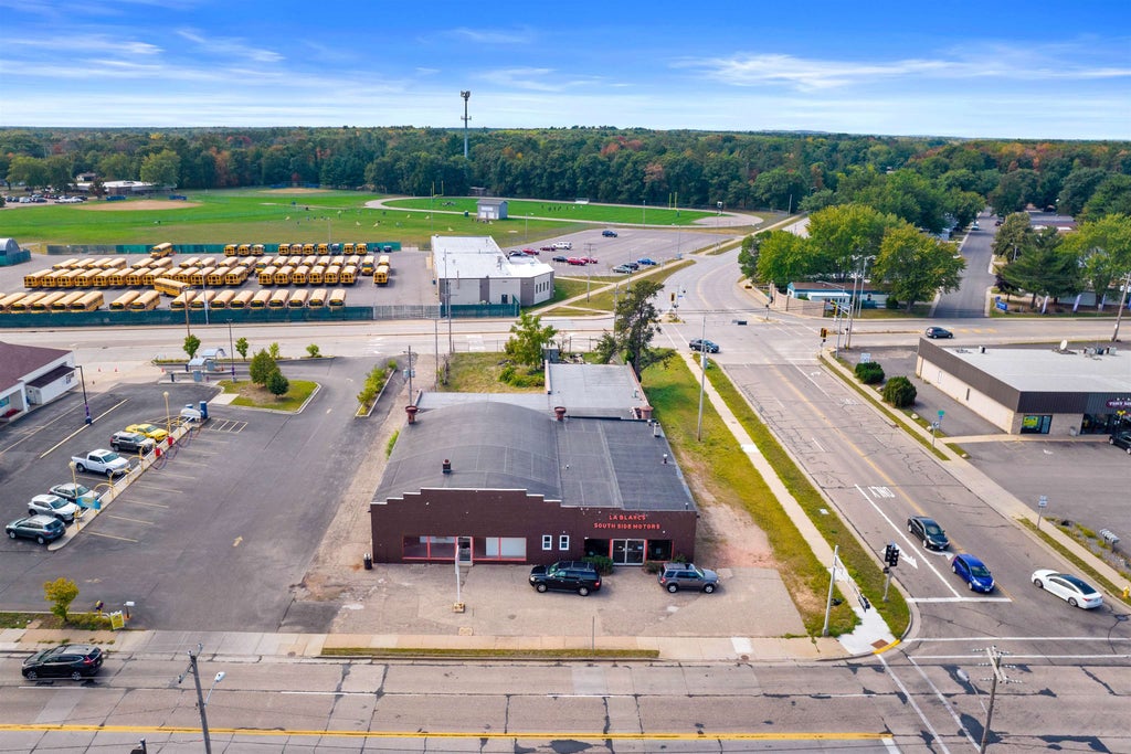 Locate your business across from Walgreens and next to Sudzee Car Wash. This property has many possibilities from retail to manufacturing and more. High visibility location at the controlled intersection of a prime corridor with estimated daily traffic counts of 12,000. The entire building is divided into two separate units with a combined sq ft of 9,500+. The building consists of many rooms of various sizes, high ceilings, numerous overhead furnaces for zone control heating, show room, workshop, offices, several bathrooms and multiple garage bays with numerous OH garage doors up to 11 ft high offering multiple entry points. Staircase to the attic and partial basement provide additional storage space. Behind the building, a large undeveloped portion of the lot has potential for additional parking. The possibilities are only limited by your imagination. Buyer to verify intended use with Stevens Point Zoning - Seller open to leasing this property.